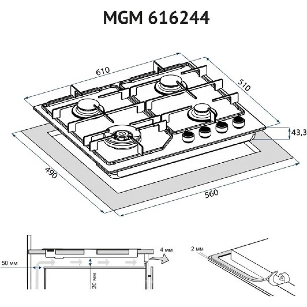 Размеры для встраивания (ШxГ)